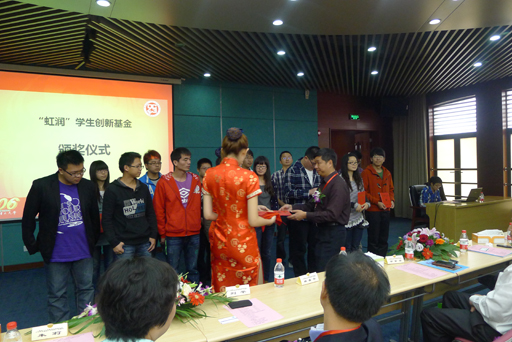 董事長林善平為上海理工大學(xué)獲獎(jiǎng)學(xué)生頒發(fā)虹潤助學(xué)獎(jiǎng)金