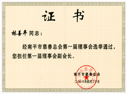 公司董事長(zhǎng)當(dāng)選為南平市慈善總會(huì)副會(huì)長(zhǎng) 公司向南平市慈善總會(huì)捐資三十萬(wàn)元