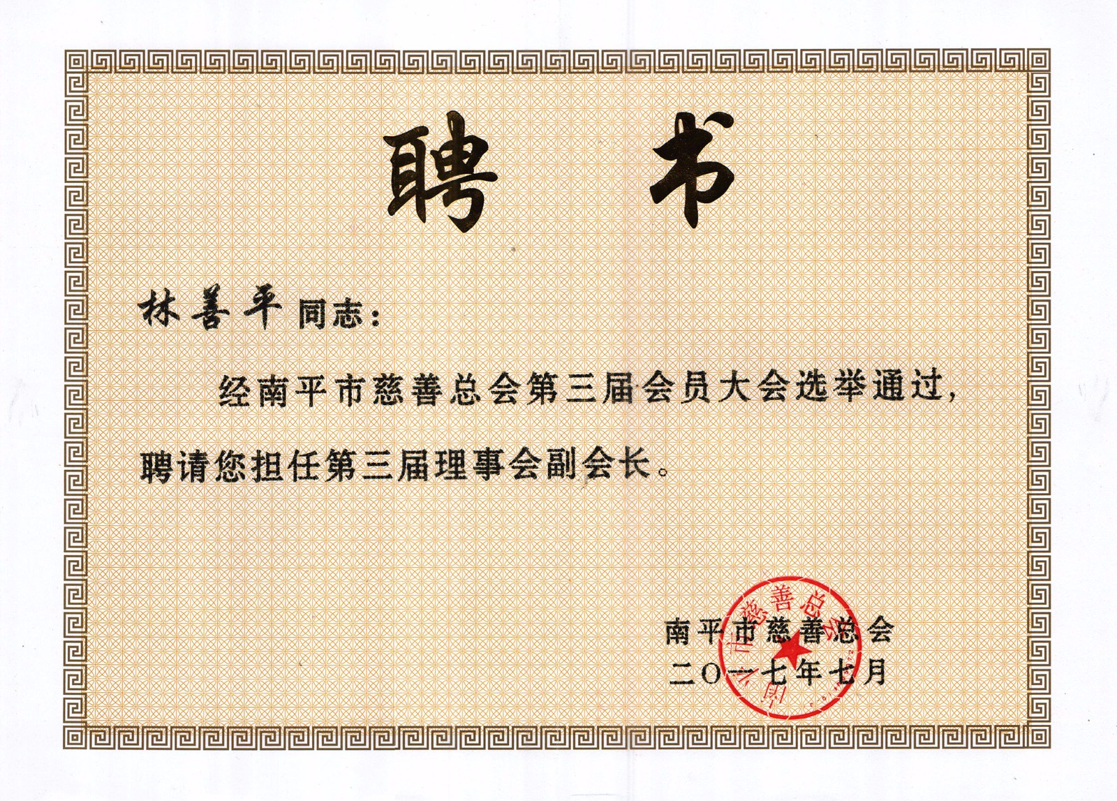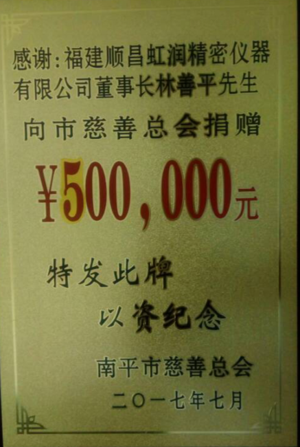 2017年7月28日,南平市慈善捐贈(zèng)大會(huì)暨市慈善總會(huì)換屆會(huì)議在南平市委舉行,福建順昌虹潤(rùn)董事長(zhǎng)林善平再次當(dāng)選為南平市慈善總會(huì)第三屆理事會(huì)副會(huì)長(zhǎng),這也是林善平董事長(zhǎng)第三次當(dāng)選此職。同時(shí),在本次慈善捐贈(zèng)大會(huì)上,他再次向市慈善總會(huì)捐款50萬元。他表示,他還將一如既往,繼續(xù)加大對(duì)社會(huì)公益事業(yè)的支持力度,積極投身公益和慈善事業(yè),為南平市的慈善事業(yè)作出更大的貢獻(xiàn)。目前,林善平董事長(zhǎng)各項(xiàng)公益捐款累計(jì)已達(dá)1000余萬元。